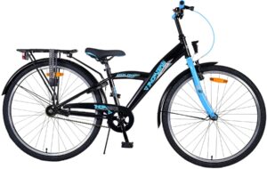 Veiligheid staat voorop! Daarom heeft deze gave fiets een handrem en terugtraprem en verlichting op batterij voor en achter. Daarnaast heeft de fiets een leuke bel en reflectoren in de wielen. Ook aan het comfort is gedacht. De mooie zwarte Volare fiets met blauwe accenten heeft een luxe zacht zadel en extra zachte handvaten, een handige achterdrager, en een stevig frame dat wel tegen een stootje kan. Verder heeft de fiets een standaard zodat hij netjes blijft staan en een sterk slot. Om zo lang mogelijk van de fiets te kunnen genieten heeft deze een extra lange zadelpen waardoor de fiets nóg langer met het kind meegroeit en ook het stuur is in hoogte verstelbaar.