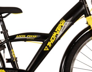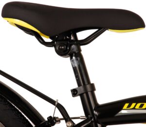 Veiligheid staat voorop! Daarom heeft deze gave fiets geen terugtraprem maar twee handremmen en verlichting op batterij voor en achter. Daarnaast heeft de fiets een leuke bel en reflectoren in de wielen. Ook aan het comfort is gedacht. De mooie zwarte Volare fiets met gele accenten heeft een luxe zacht zadel en extra zachte handvaten, een handige achterdrager, en een stevig frame dat wel tegen een stootje kan. Verder heeft de fiets een standaard zodat hij netjes blijft staan en een sterk slot. Om zo lang mogelijk van de fiets te kunnen genieten heeft deze een extra lange zadelpen waardoor de fiets nóg langer met het kind meegroeit en ook het stuur is in hoogte verstelbaar.