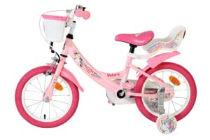 De Volare Unicorn 14 inch is een kleurrijke en speelse meisjesfiets voor kinderen die dol zijn op Unicorns en avontuur. Deze prachtige roze fiets is rijk versierd met vrolijke Unicorn- en regenboogdetails, waardoor iedere rit een feestje wordt.