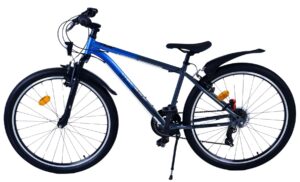 Veiligheid staat voorop! Daarom heeft deze gave fiets 2 handremmen en geen terugtraprem! Daarnaast heeft de fiets 21 versnellingen van shimano met revoshifters, reflectoren in de wielen, reflectoren voor en achter op de fiets, een bel, verlichting op batterijen voor en achter. De gekantelde stuurpen zorgt voor een beter zicht op de weg, maar is daardoor niet in hoogte verstelbaar. Ook aan het comfort is gedacht. De mooie satijn grijze Volare fiets met rode accenten heeft een comfortabel zacht zadel, een standaard zodat je fiets netjes blijft staan, en stoere extra brede banden. Om zo lang mogelijk van de fiets te kunnen genieten heeft de fiets een extra lange zadelpen waardoor de fiets nóg langer meegroeit.